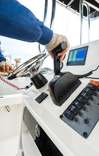 • Anodized T-Top with Rocket Launcher and Spreader Lights (210 Coastal Elite Package only)– Added shade, rod storage, and night visibility.