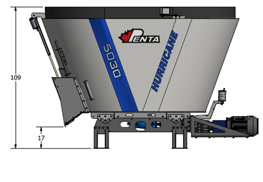 Penta Stationary Vertical Mixers are compact and convenient machines with a high capacity and low power consumption. Stationary Mixers offer the possibility to use more economical feed boxes with less horsepower to distribute the feed. The mixers run at a reduced constant RPM as opposed to mobile mixers, and full clean out can be arranged through a variable drive and gearbox. All mixers are built on a subframe and supports can be ordered to put the machine at the desired height. The machine is operated by a frequency changer which makes sure that the machine starts slowly and without any increase in power. The frequency changer also enables acceleration as required. Contact Penta for door location and HP requirements.