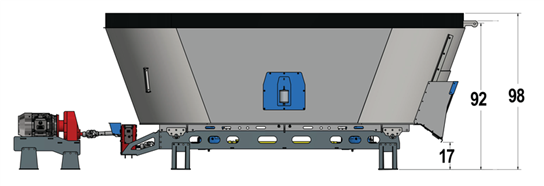 Penta Stationary Vertical Mixers are compact and convenient machines with a high capacity and low power consumption. Stationary Mixers offer the possibility to use more economical feed boxes with less horsepower to distribute the feed. The mixers run at a reduced constant RPM as opposed to mobile mixers, and full clean out can be arranged through a variable drive and gearbox. All mixers are built on a subframe and supports can be ordered to put the machine at the desired height. The machine is operated by a frequency changer which makes sure that the machine starts slowly and without any increase in power. The frequency changer also enables acceleration as required. Contact Penta for door location and HP requirements.