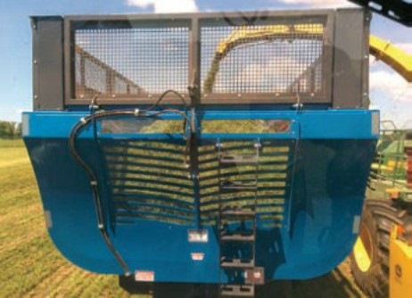 The front of the box is designed to be operator friendly Exceptional visibility is achieved with a viewing window covered with plexiglass, making it effortless for the operator to view inside while loading. A foldaway front ladder is also featured for when a closer look is required. A hydraulic front gate tilts forward for the initial pass through the field, for ease of loading while following a forage harvester.