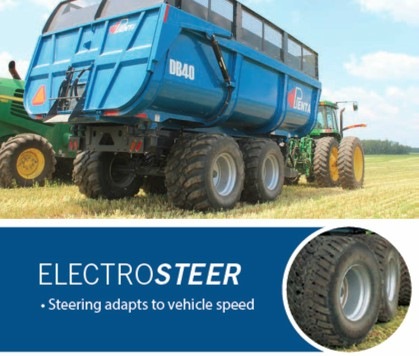 The DB50, DB60, and DB70 models also feature front and rear steering axles. The steering system is a follow steering system, and is operated through hydraulic lock and unlock. For road transport, the steering system can be hydraulically locked out to improve stability.