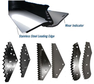 Penta augers are equipped with 3 different styles of deep serrated, heat-treated, tungsten carbide knives. Different knife styles and mounting options give you the flexibility to process any type of feed (hay, haylage, silage, straw, by products, corn, and soybean stalks), making Penta mixers the best option for all operations, delivering results no matter what your nutritional needs. |