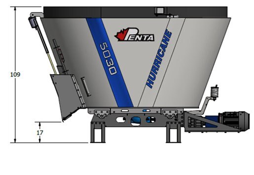 SINGLE AUGER STATIONARY 5030Penta Stationary Vertical Mixers are compact and convenient machines with a high capacity and low power consumption. Stationary Mixers offer the possibility to use more economical feed boxes with less horsepower to distribute the feed. The mixers run at a reduced constant RPM as opposed to mobile mixers, and full clean out can be arranged through a variable drive and gearbox. All mixers are built on a subframe and supports can be ordered to put the machine at the desired height. The machine is operated by a frequency changer which makes sure that the machine starts slowly and without any increase in power. The frequency changer also enables acceleration as required. Contact Penta for door location and HP requirements. |