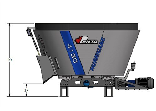 SINGLE AUGER STATIONARY 4130Penta Stationary Vertical Mixers are compact and convenient machines with a high capacity and low power consumption. Stationary Mixers offer the possibility to use more economical feed boxes with less horsepower to distribute the feed. The mixers run at a reduced constant RPM as opposed to mobile mixers, and full clean out can be arranged through a variable drive and gearbox. All mixers are built on a subframe and supports can be ordered to put the machine at the desired height. The machine is operated by a frequency changer which makes sure that the machine starts slowly and without any increase in power. The frequency changer also enables acceleration as required. Contact Penta for door location and HP requirements. |