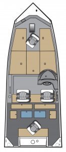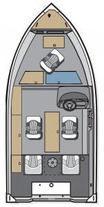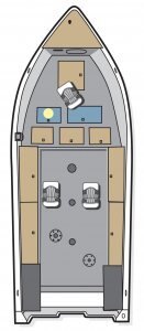Exterior Features Full Length Spray Rail Reverse Chine Reinforced Bow Support All Welded .125 Marine Grade Aluminum, One-Piece Bottom 6-Sturdy...