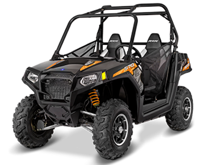 The RZR 570 features a 45 HP ProStar® engine, offering impressive acceleration of "0-35 mph in 4.0 sec" |