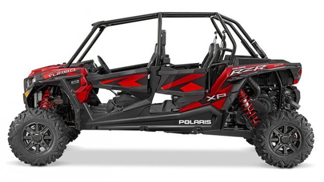 The RZR XP 4 Turbo is built upon a 117-inch wheelbase and 13.5-inches of ground clearance. The long 4-seat wheelbase and suspension combo provides an ultra-smooth ride over the harshest terrain without unwanted chassis pitch; and delivers unmatched control and comfort without sacrificing agility. | |||||||