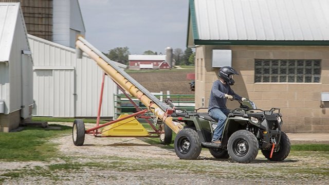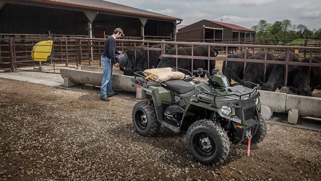 Hard Working 270 lbs. Combined Rack Capacity Carry more with a combined front and rear rack capacity of 270 lbs (180 lbs. Rear, 90 lbs. Front capacity). Sportsman 450 H.O. features flat racks and integrated steel tie downs to easily tie down and secure cargo. |