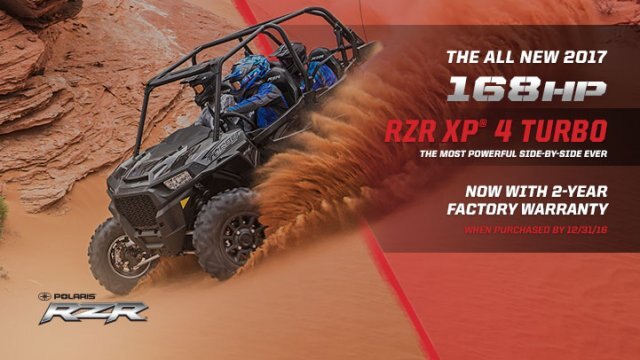 The RZR XP® Turbo EPS is the best handling RZR® ever, delivering ultimate control in every condition. Combined with the FOX PODIUM Internal Bypass Shock technology, the RZR XP® Turbo features a front stabilizer bar and retuned rear stabilizer bar to nearly eliminate body roll and dipping around corners to dramatically improve handling and control. |