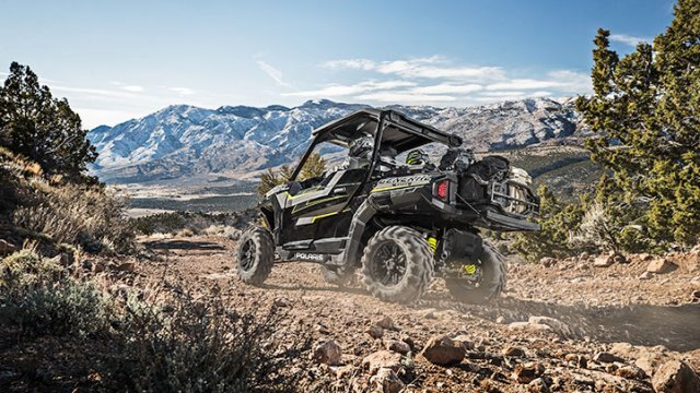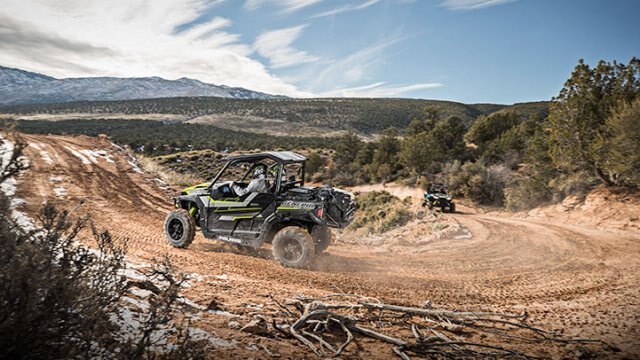 The Polaris GENERAL's Deluxe Edition comes standard with a poly sport roof, Polaris HD 4500 lb. winch and low profile front bumper to help you dominate the trail and take on the work when you get home. |