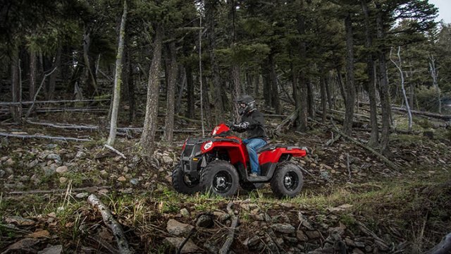 Polaris Sportsman, the best selling automatic 4x4. The AWD engages all four tires when the rear wheels slip and you need more forward traction. Reverts back to 2WD when you don’t. Its simple and doesn't require pushing any extra buttons or pulling levers like the competition. |