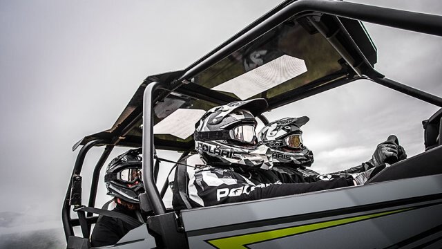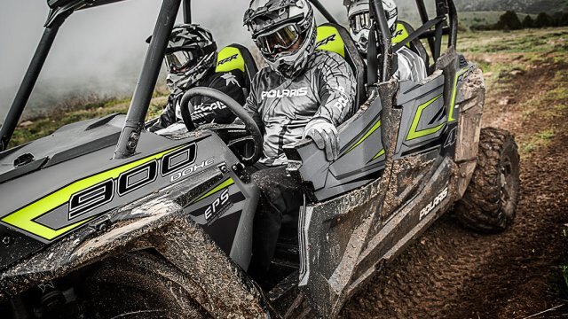 The RZRS4 900 doesn’t stop with power, suspension and agility. It's also engineered for all day comfort on the trail. The cab features bolstered seats with thin-film material to keep occupants drier, adjustable tilt steering, space-optimized foot rests, rear passenger knee pads and grab bar, and factory-installed quarter doors that keep the occupants planted and secure. And when the ride is finally over, there are convenient removable floor drains that allow you to wash out debris and mud quickly and easily. |