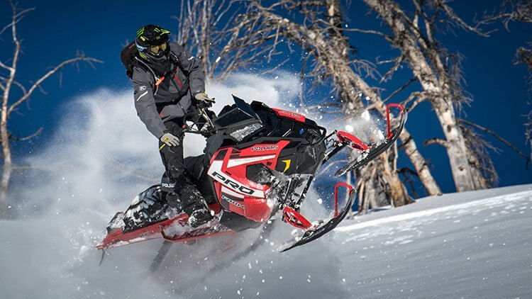 The combination of the raised and lightweight AXYS® chassis, a powerful Polaris® engine, and the Polaris-exclusive track designs pop the PRO-RMK® 163 on top of the snow.