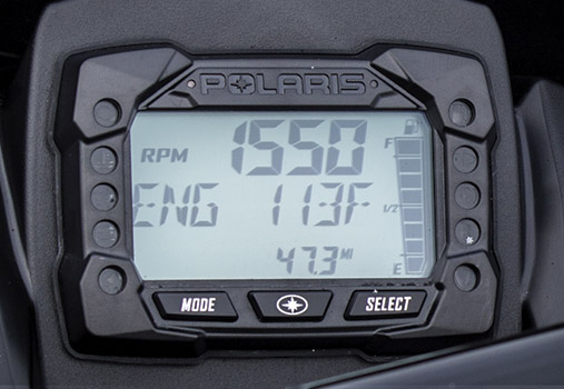 Polaris Interactive Digital Display This exclusive and industry-leading full color display provides important information and capabilities to the rider such as: sled performance, Bluetooth™, GPS mapping, Clock, and LH Control. This gauge comes as an option on some models and is also available as an accessory. |