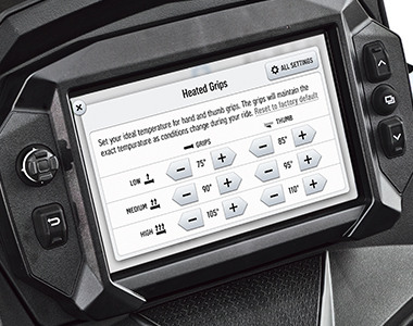 Industry Exclusive SmartWarmers Build heat quickly and maintain your customized temperature regardless of the temperature outside. Enhance your ride further by setting thumb vs. hand heat range for an even more customized level of comfort. |