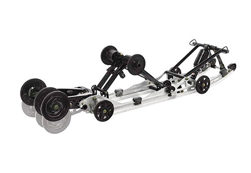 144 Coil-Over Rear Suspension The coil-over rear suspension of the 550 Voyageur 144 is designed for better flotation and deep snow performance with improved on-trail ride. By eliminating the torsion springs and redesigning the torque arms, this skid weighs substantially less. |