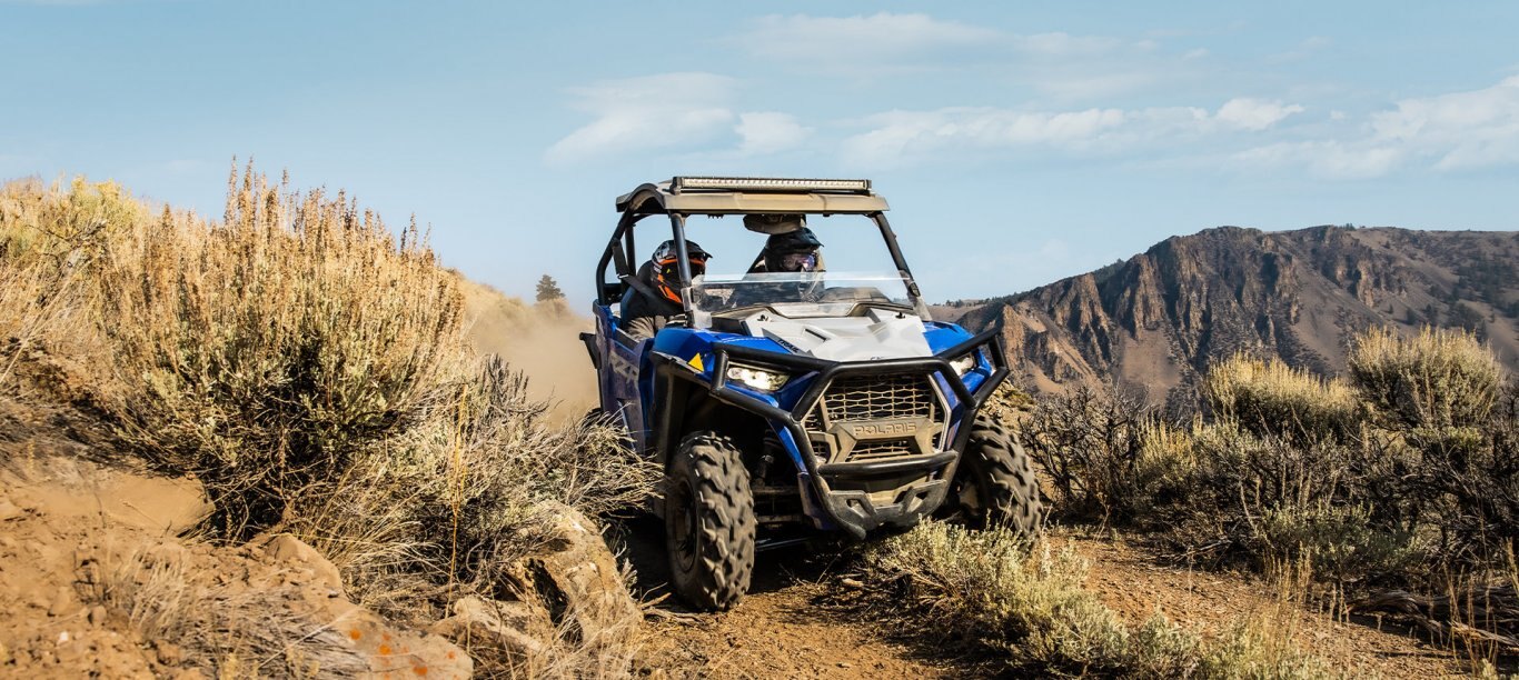 SUPERIOR PROTECTION Polaris RZR Trail  racing on a trail road in the sunset