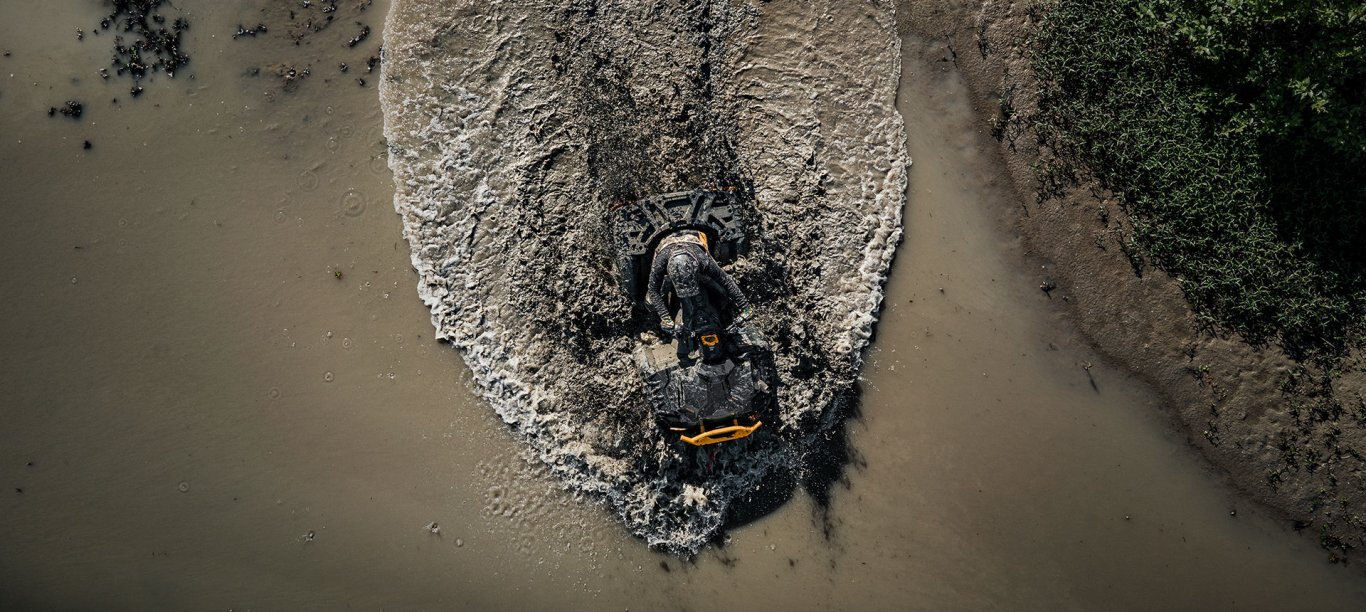 Extreme mud performance can be found throughout including an industry-first handle-bar mounted grab-bar for off-camber control, fortified arched A-arms, recovery ready 3,500 lb winch and a heavy-duty front bumper. |