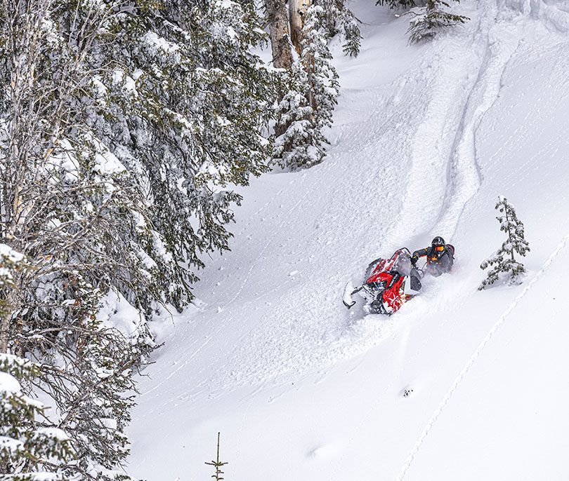 The industry leading power of the Patriot Boost and the unrivaled lightweight response of the Patriot 9R power the Pro-RMK Slash to new heights in deep and technical terrain. |