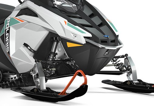 The adjustable-stance Independent Front Suspension (IFS) allows the sled to evolve with the rider. The shocks are designed and calibrated specifically for the RMK EVO chassis. The deep keel of the RMK ski offers more control and the wider design provides greater flotation.