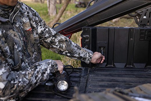 The clean and quiet operation of the electric powertrain enables easy conversation, stealthy trips to hunting spots, and convenient operation around livestock. |