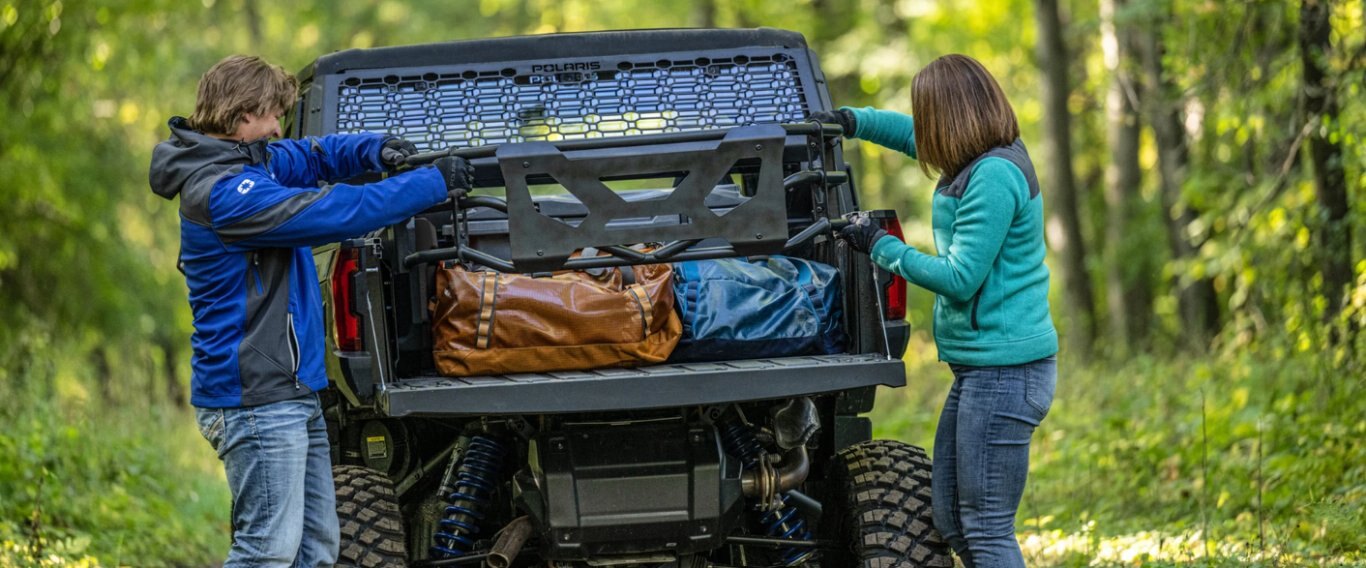 With available locking doors and center console, tilt and telescoping steering wheel, and adjustable bucket seats, the Polaris XPEDITION cab allows for a tailored fit for yourself and your gear.
