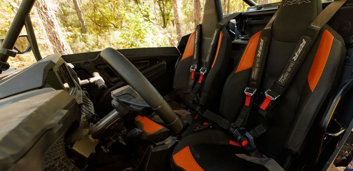 Color Matched Seats Programmable Speed Limiting PIN Enabled Engine Start Security 660-W Charging System @ 3,000 RPM 6-Position PULSE Bar Front Tow Loop Front Bumper Passenger Grab Handle with Integrated Lug Nut Hex Wrench Driver and Passenger Dash Storage Bins