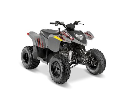 196cc Engine Carbureted Automatic PVT Transmission Dual A-Arm Front Suspension 7" Front / 6.5'' Rear Travel Suspension Adjustable Speed Limiter Polaris Youth Helmet Safety W...