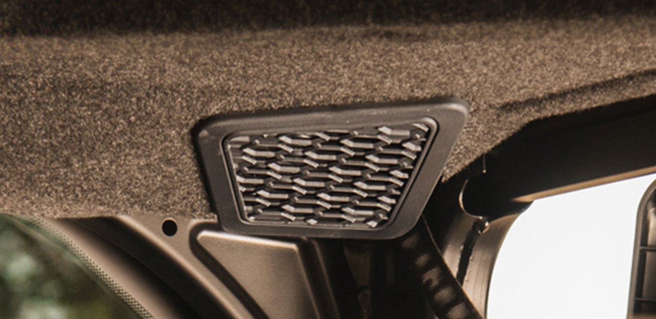 LED headlights with LED taillights, LED rear work light, LED dome light, door puddle lighting, front LED auxiliary lights, interior accent lighting, lighting modes: low, high, accent, blackout. Blackout mode switches off the headlights and dims interior lighting