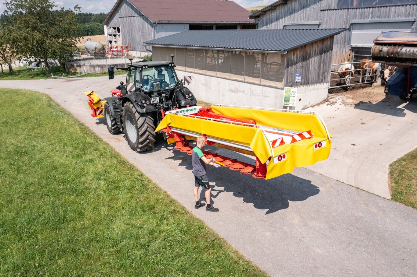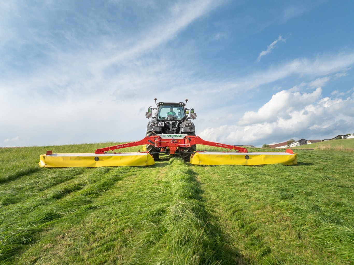 With the NOVACAT H mower combinations, PÖTTINGER sets new standards in terms of high output and efficiency. The NOVACAT H 11200 is the largest mounted mower combination available on the market. It gives you a full working width of 11.14 m for the lowest fuel consumption. The NOVACAT H 9500 achieves a maximum working width of 9.46 m.