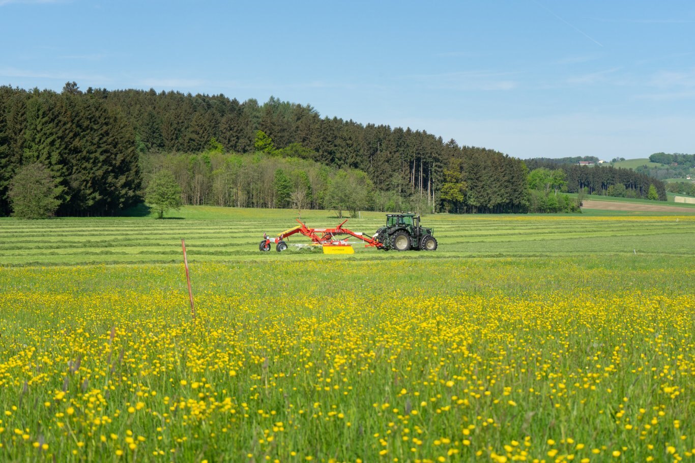 With TOP A side rakes you benefit from the highest flexibility. On our rotary rakes, a wide range of working widths is possible thanks to the ingenious steering system on the rear rotor.