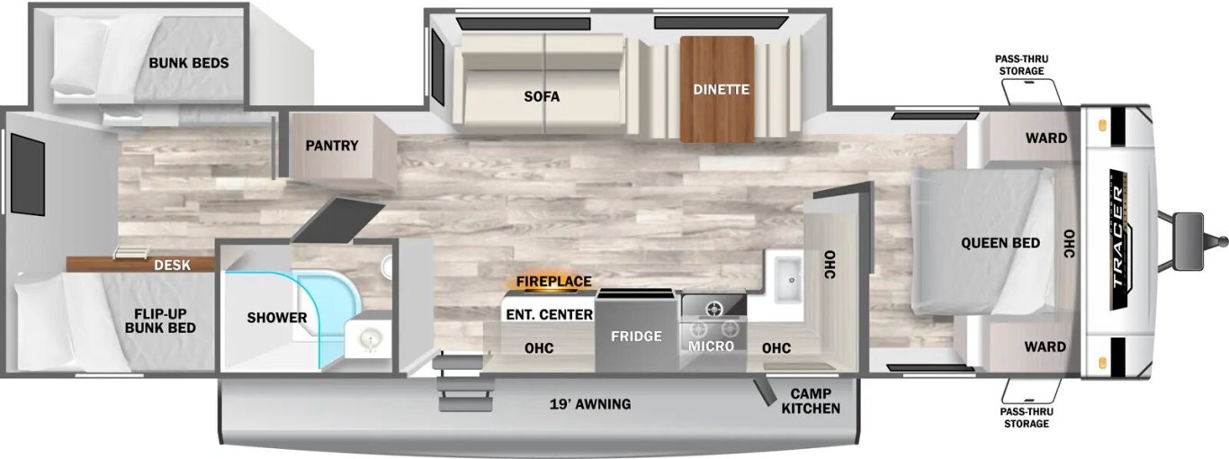 For the consumer who is looking for ultra-light weights, but doesn’t want to sacrifice style, amenities, and comfort... we’ve designed the Tracer series travel trailers. The Tracer Ultra-Lite offers spacious layouts, plush residential furniture, and other high end features not typically seen in an ultra-lite trailer that is often thousands of pounds lighter than traditional travel trailers! The Tracer has raised the bar for comfort and luxury in an ultra-lite brand. In your next travel trailer, make NO SACRIFICES!