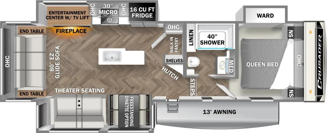 Campers are searching for a product that raises the bar of expectations. The product team behind Crusader understands that quality and a premium experience are priorities to a fifth wheel buyer. The best fifth wheels are crafted, not built. This is why the brand has become fully imbedded in the premium mid-profile space with quality finishes and construction. The interior design and use of space in these floorplans is the result of tireless intentionality and communication between a dedicated designer and product team with decades of industry experience.