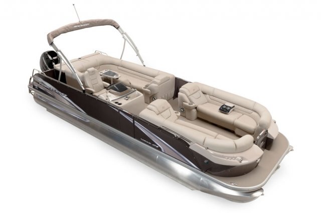 5052-H36 marine grade aluminum alloy NMMA & Transport Canada certified 2 ½" heavy-duty extruded Z-aluminum cross channels APS style side panels Sealed pontoon bulkheads with top mounted air plug (25") V-shaped aluminum engine pod Pressure-treated wood deck covered with marine grade carpet Extruded aluminum full-length pontoon keels Extruded aluminum full-length pontoon skirting Stern chromed corners Rear reclining padded sundeck Walk-thru bow gate with lift and lock hinges Walk-thru rear gate with lift and lock hinges Starboard side gate with lift and lock hinges Port side gate with lift and lock hinges Rear swim platform Bow molded section with integrated LED lighting Stainless steel bow eye Lifting eyes 4 stainless steel recessed cleats Gate holder