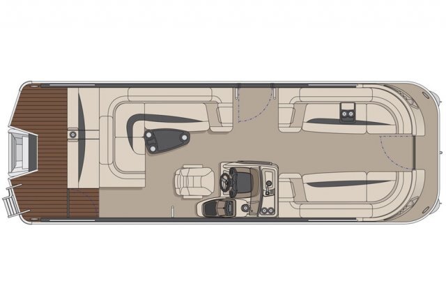 Helm console with galley unit including sink, faucet with electric pump and portable water tank Molded dash panel with black pearl woodgrain inserts and lighted switches Sport tilt steering mechanism Clarion Radio CMS2 compatible MP3, WMA, MP4, Bluetooth, Pandora, SiriusXM, and USB 4 waterproof speakers ( 6 ½" ) Lowrance depth finder gauge with water temperature Electric horn 12V outlet Push on/off console courtesy light LED lighting under driver console Smoked windscreen