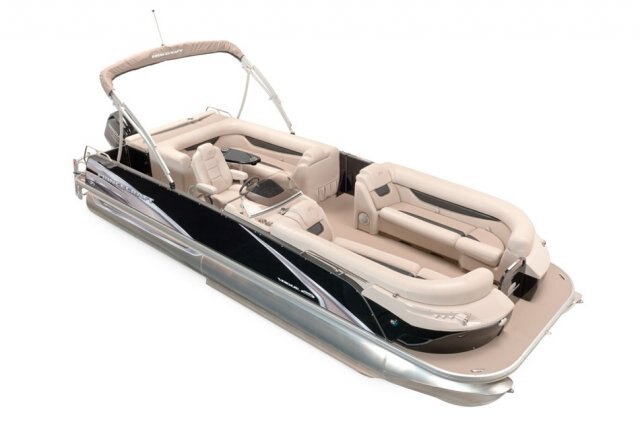 5052-H36 marine grade aluminum alloy NMMA & Transport Canada certified 2 ½" heavy-duty extruded Z-aluminum cross channels APS style side panels Sealed pontoon bulkheads with top mounted air plug (25") V-shaped aluminum engine pod Pressure-treated wood deck covered with marine grade carpet Extruded aluminum full-length pontoon keels Extruded aluminum full-length pontoon skirting Stern chromed corners Rear reclining padded sundeck Walk-thru bow gate with lift and lock hinges Walk-thru rear gate with lift and lock hinges Port side gate with lift and lock hinges Rear swim platform Bow molded section with integrated LED lighting Stainless steel bow eye Lifting eyes 4 stainless steel recessed cleats Gate holder