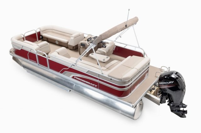 5052-H36 marine grade aluminum alloy NMMA & Transport Canada certified 2 ½" heavy-duty extruded Z-aluminum cross channels 1 1/4" anodized aluminum rails Sealed pontoon bulkheads with top mounted air plug (25") V-shaped aluminum engine pod Pressure-treated wood deck covered with marine grade carpet Extruded aluminum full-length pontoon keels Extruded aluminum full-length pontoon skirting Stern chromed corners Rear padded sundeck Walk-thru bow gate with lift and lock hinges Walk-thru rear gate with lift and lock hinges Port side gate with lift and lock hinges Rear swim platform Stainless steel bow eye Lifting eyes 4- 6" chromed deck cleats
