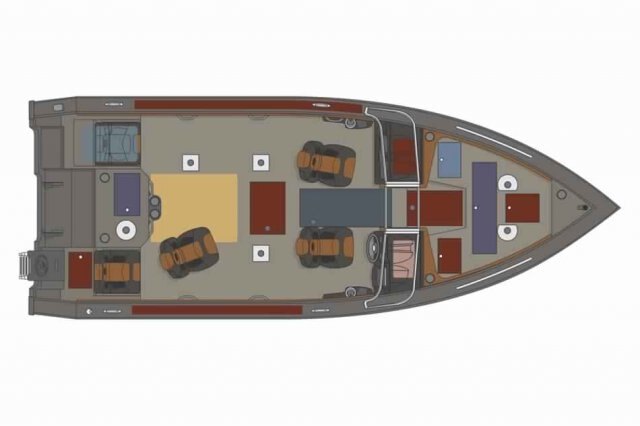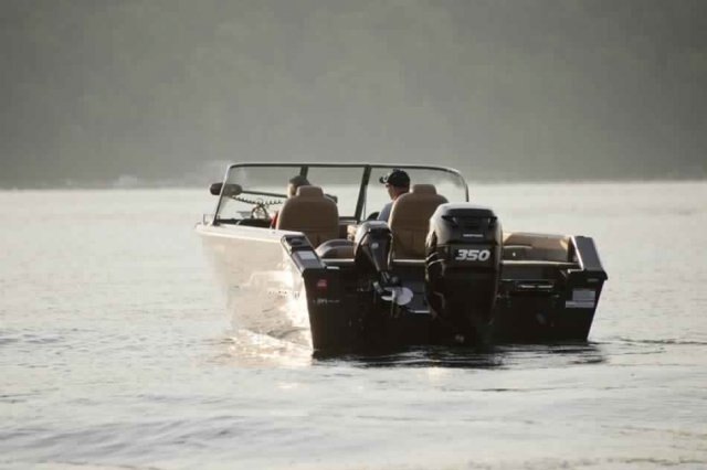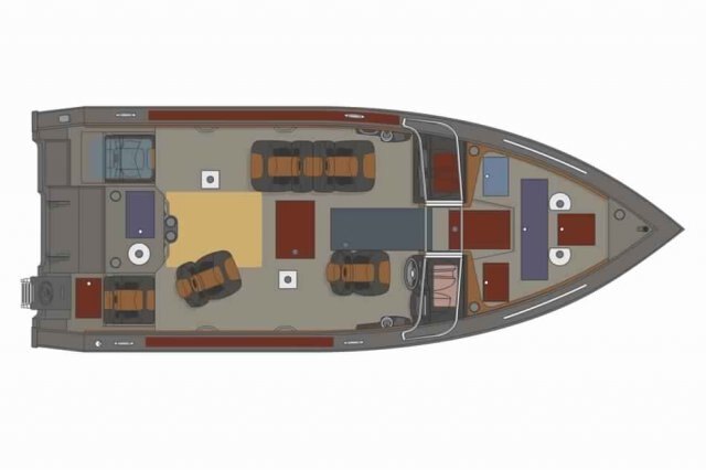 Functionality, comfort and beauty is what you will find in the 22’ fishboat. With bow and aft raised casting platforms, livewells, plenty of storage, rear fold-down jump seats, and a pop-up privacy enclosure, this Platinum SE boat has everything you need to spend the best possible time on the water. This boat can handle an outboard engine ranging from 200 to 350 HP and 11 people.