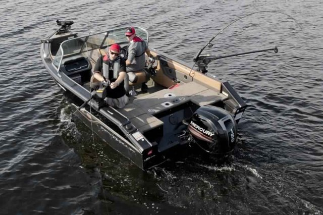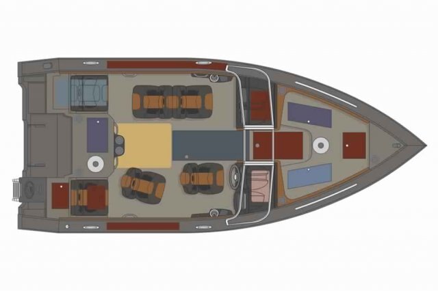 Functionality, comfort and beauty is what you will find in the 18’-6’’ fishboat. With bow and aft raised casting platforms, livewells, plenty of storage, rear fold-down jump seats, and a pop-up privacy enclosure, this Platinum SE boat has everything you need to spend the best possible time on the water. This boat can handle an outboard engine ranging from 150 to 175 HP and 7 people (8 in the USA).