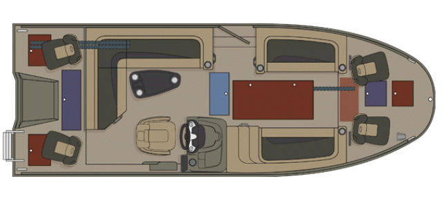 Stern boarding ladder Built-in floor fuel system 2 electric bilge pumps (500 gph) 3 battery trays Navigation lights Interior lighting Cup holders Holding handles