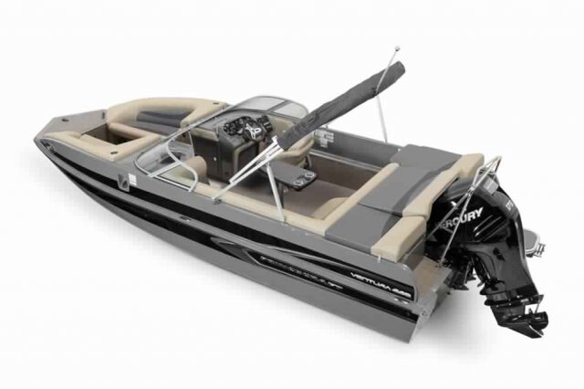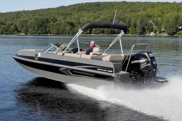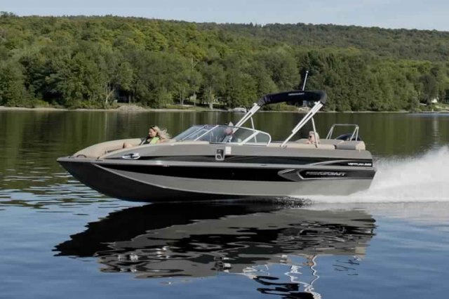 5052-H36 marine grade aluminum alloy NMMA & Transport Canada certified Pressure treated wood deck covered w/ marine grade carpet (20 oz) High gloss exterior High Solids urethane paint and decal package High performance deep Vee reverse chine hull design Stainless steel bow eye 6 stainless steel cleats (6") Side panel rigging tubes from stern to console and console to bow Rear boarding access w/ gates Full-width rear padded sun deck Built-in floor cooler In-floor lockable ski storage compartment Anchor storage