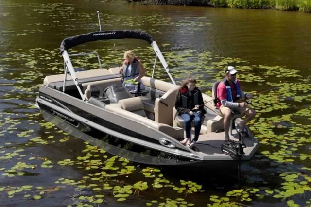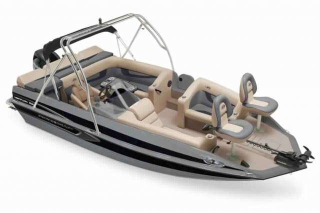 This 19’-2’’ aluminum deck boat can comfortably sit up to 8 (10 in the USA) and be powered by an engine ranging from 115 to 150 HP. With its 174 L (46 U.S. gal.) gas tank, its full-width rear padded sundeck, its chaise lounge, its 2 folding seats, a large electric-filled aerated livewell, and a lockable rod storage compartment, it is the ideal deck boat to go fishing or just cruising!