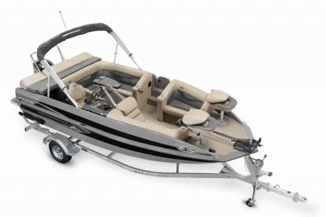 5052-H36 marine grade aluminum alloy NMMA & Transport Canada certified Pressure treated wood deck covered w/ marine grade carpet (20 oz) High gloss exterior High Solids urethane paint and decal package High performance deep Vee reverse chine hull design Stainless steel bow eye 6 stainless steel cleats (6") Side panel rigging tubes from stern to console and console to bow Rear boarding access Built-in floor cooler In-floor lockable ski storage compartment Anchor storage