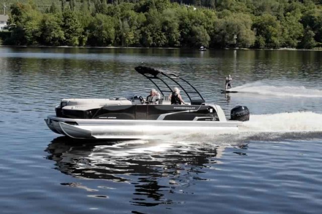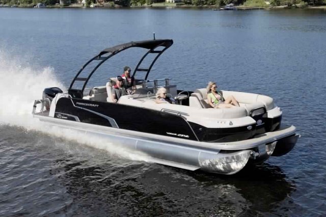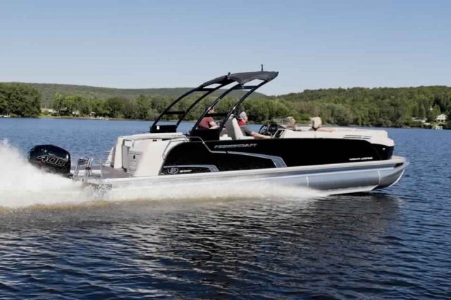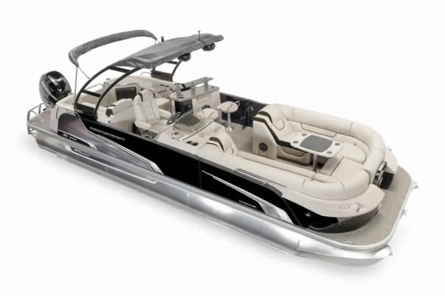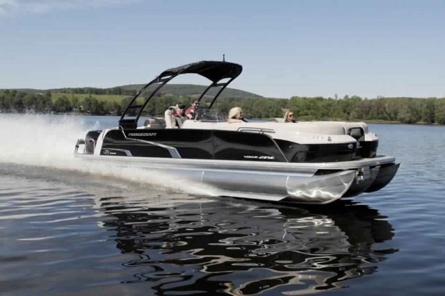 This 27’-11’’ pontoon features all the comfort and convenience you enjoy at home… and more. Aft bar section with corner module including refrigerator, cooler storage, 12 volt outlet, 4 adjustable stools, lots of storage, a galley with a sink and faucet, water tank (portable), ultra-plush upholstery, chaise lounges, radio, a swim platform and so much more. Have a party with up to 13 friends or enjoy your favorite water sports. Rig your pontoon with an engine up to 400 HP and get ready for some serious fun!