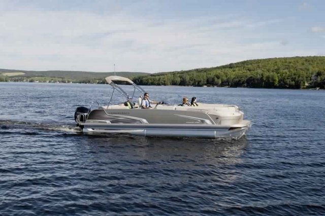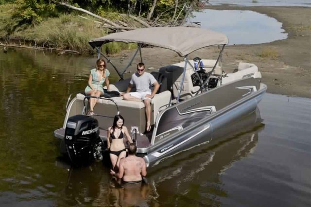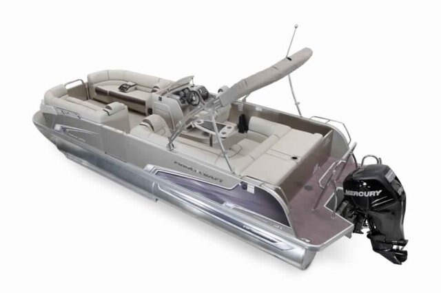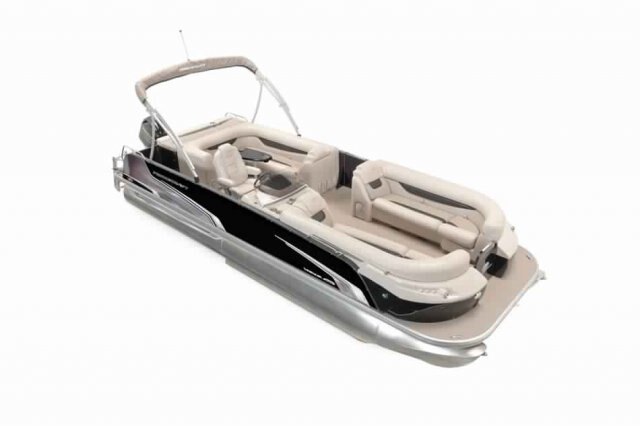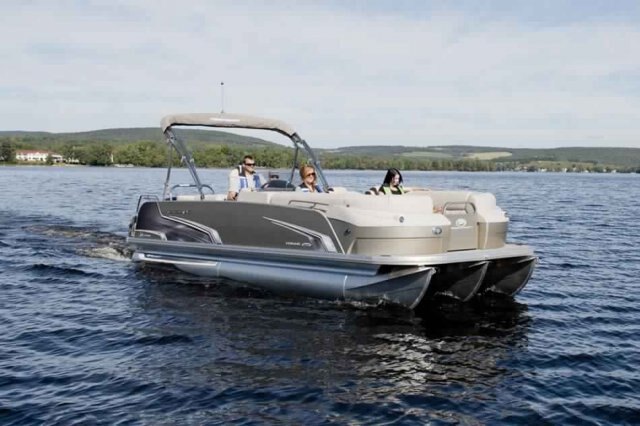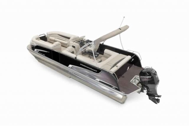5052-H36 marine grade aluminum alloy NMMA & Transport Canada certified 2 ½" heavy-duty extruded Z-aluminum cross channels APS style side panels Sealed pontoon bulkheads with top mounted air plug (25") V-shaped aluminum engine pod Pressure-treated wood deck covered with marine grade carpet Extruded aluminum full-length pontoon keels Extruded aluminum full-length pontoon skirting Stern molded corners Rear reclining padded sundeck Walk-thru bow gate with lift and lock hinges Walk-thru rear gate with lift and lock hinges Port side gate with lift and lock hinges Rear swim platform Bow molded section with integrated LED lighting Stainless steel bow eye Lifting eyes 4 stainless steel recessed cleats Gate holder
