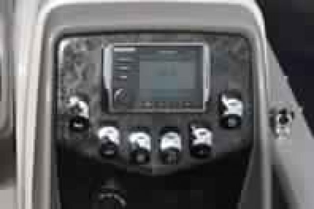 Helm console with galley unit including sink, faucet with electric pump and portable water tank Molded dash panel with black pearl woodgrain inserts and lighted switches Sport tilt steering mechanism 200-watt AM/FM/Bluetooth Kicker KMC 10 Stereo with integrated USB plug and auxiliary input (1/8") in console 4 waterproof speakers ( 6 ½" ) Lowrance depth finder gauge with water temperature Electric horn 12V outlet Push on/off console courtesy light LED lighting under driver console Smoked windscreen
