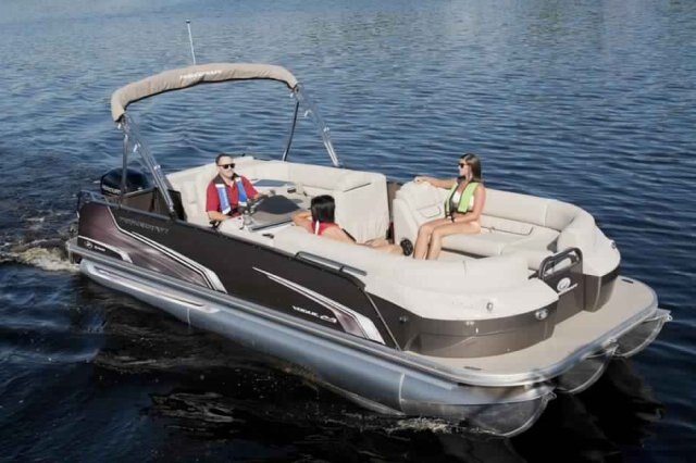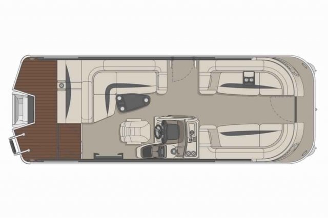 This 23’-11’’ pontoon features all the comfort and convenience you enjoy at home… and more. A galley with a sink and faucet, water tank (portable), rear reclining padded sundeck, rear swim platform, ultra-plush upholstery, chaise lounges, radio, and so much more. Have a party with up to 10 friends or enjoy your favorite water sports. Rig your pontoon with an engine up to 250 HP (with the Performance configuration) and get ready for some serious fun!