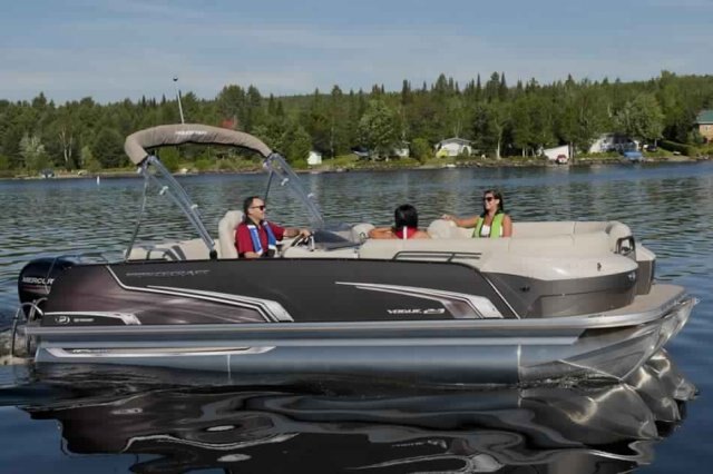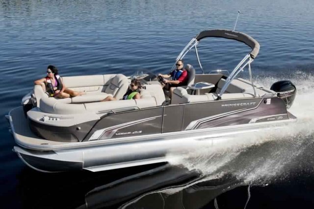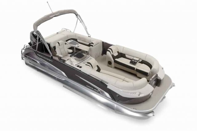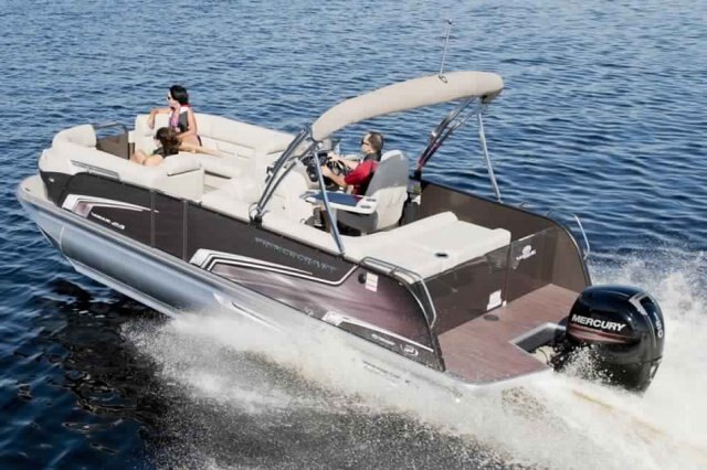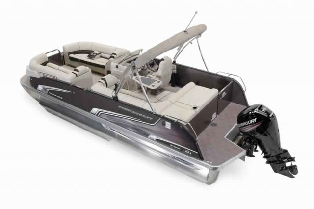 5052-H36 marine grade aluminum alloy NMMA & Transport Canada certified 2 ½" heavy-duty extruded Z-aluminum cross channels APS style side panels Sealed pontoon bulkheads with top mounted air plug (25") V-shaped aluminum engine pod Pressure-treated wood deck covered with marine grade carpet Extruded aluminum full-length pontoon keels Extruded aluminum full-length pontoon skirting Stern molded corners Rear reclining padded sundeck Walk-thru bow gate with lift and lock hinges Walk-thru rear gate with lift and lock hinges Port side gate with lift and lock hinges Rear swim platform Bow molded section with integrated LED lighting Stainless steel bow eye Lifting eyes 4 stainless steel recessed cleats Gate holder