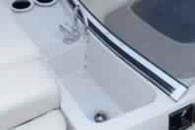 Helm console with galley unit including sink, faucet with electric pump and portable water tank Molded dash panel with black pearl woodgrain inserts and lighted switches Sport tilt steering mechanism 200-watt AM/FM/Bluetooth Kicker KMC 10 Stereo with integrated USB plug and auxiliary input (1/8") in console 4 waterproof speakers ( 6 ½" ) Lowrance depth finder gauge with water temperature Electric horn 12V outlet Push on/off console courtesy light LED lighting under driver console Smoked windscreen