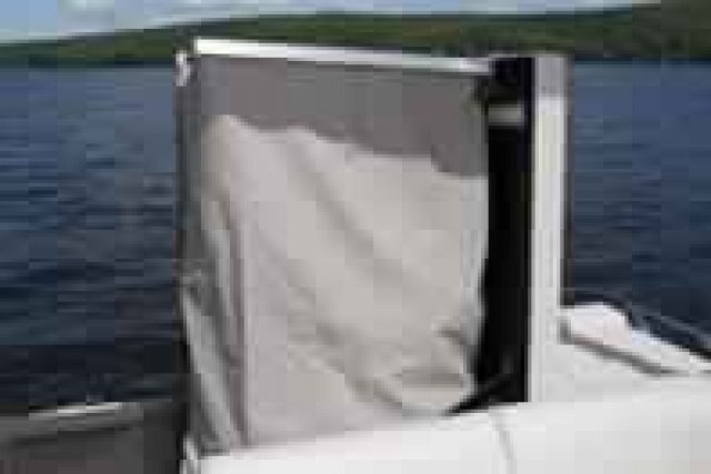 Color coordinated or taupe bimini top Quick release bimini top latches and traveling struts Factory installed canvas camper enclosure & mooring cover snap fasteners